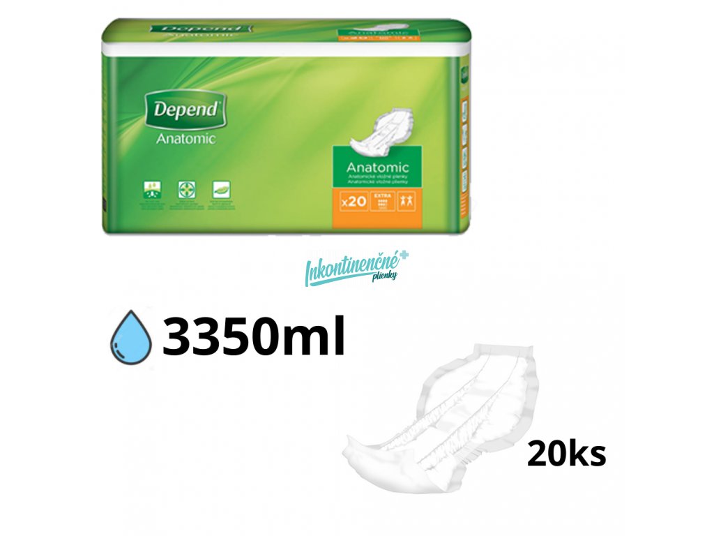 Anatomicky tvarované vkladacie plienky pre pacientov so stredným stupňom inkontinencie. Vhodné pre mužov aj ženy. Sú opatrené indikátorom vlhkosti. Rozmery 36x75 cm, savosť 3350 ml. V balení sa nachádza 20 kusov.