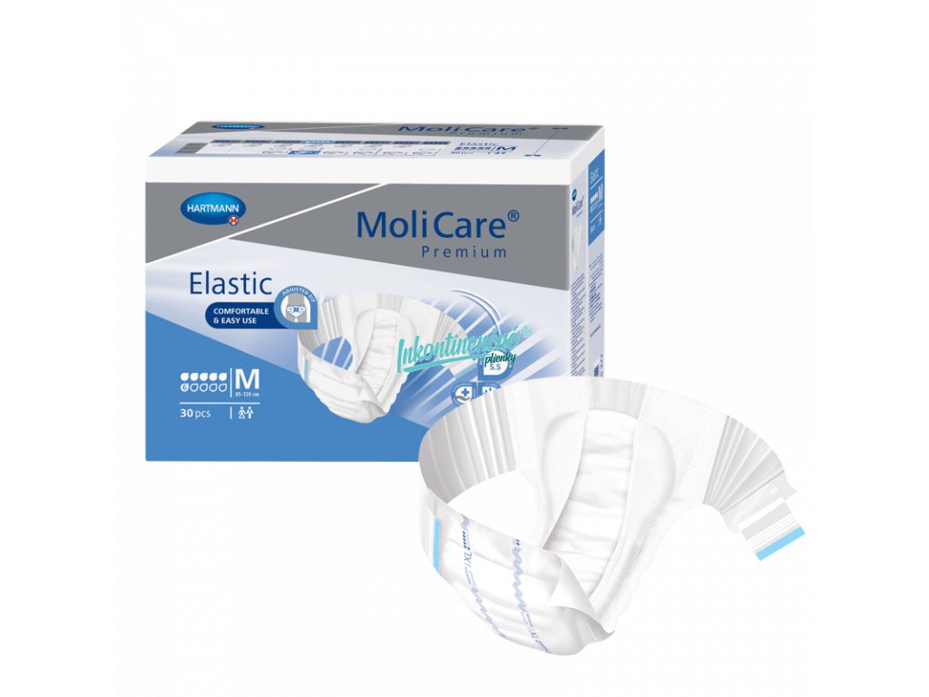 Unikátne zalepovacie nohavičky pre dospelých MoliCare Elastic 6 kvapiek s elastickými bočnými pásmi na uľahčenie každodennej starostlivosti o osobu s ťažkou inkontinenciou. Vhodné na použitie v prípadoch ťažkej inkontinencie a pre pacientov na lôžku alebo handicapovaných. Poskytujú maximálnu bezpečnosť, sú vhodné na denné použitie.
