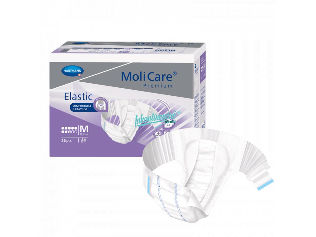Unikátne zalepovacie nohavičky pre dospelých MoliCare Elastic 6 kvapiek s elastickými bočnými pásmi na uľahčenie každodennej starostlivosti o osobu s ťažkou inkontinenciou. Vhodné na použitie v prípadoch ťažkej inkontinencie a pre pacientov na lôžku alebo handicapovaných. Poskytujú maximálnu bezpečnosť, sú vhodné na nočné použitie.