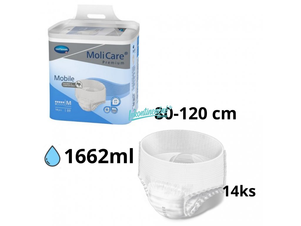 MoliCare Premium Mobile 6 kvapiek M modré, plienkové nohavičky naťahovacie 14ks